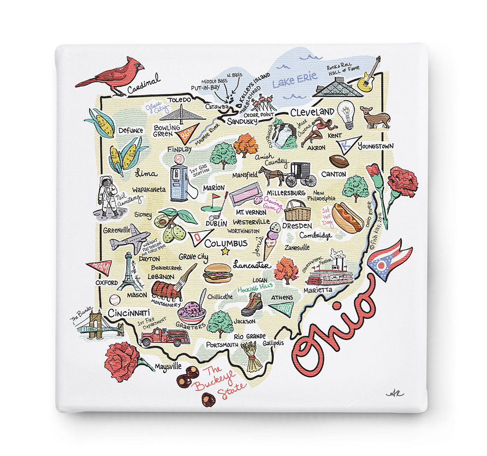 Ohio Art On Square Canvas Ohio Map Canvas Art Ohio Print For Wall Available In All 50 States State Art State Prints